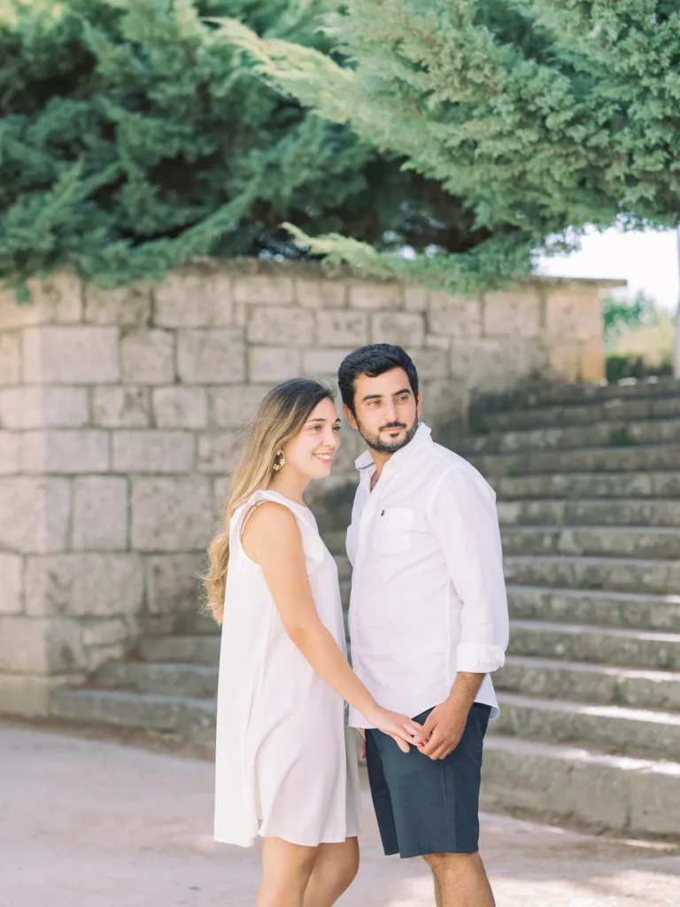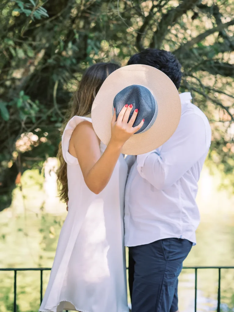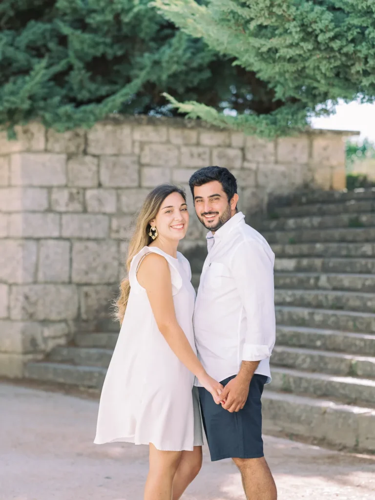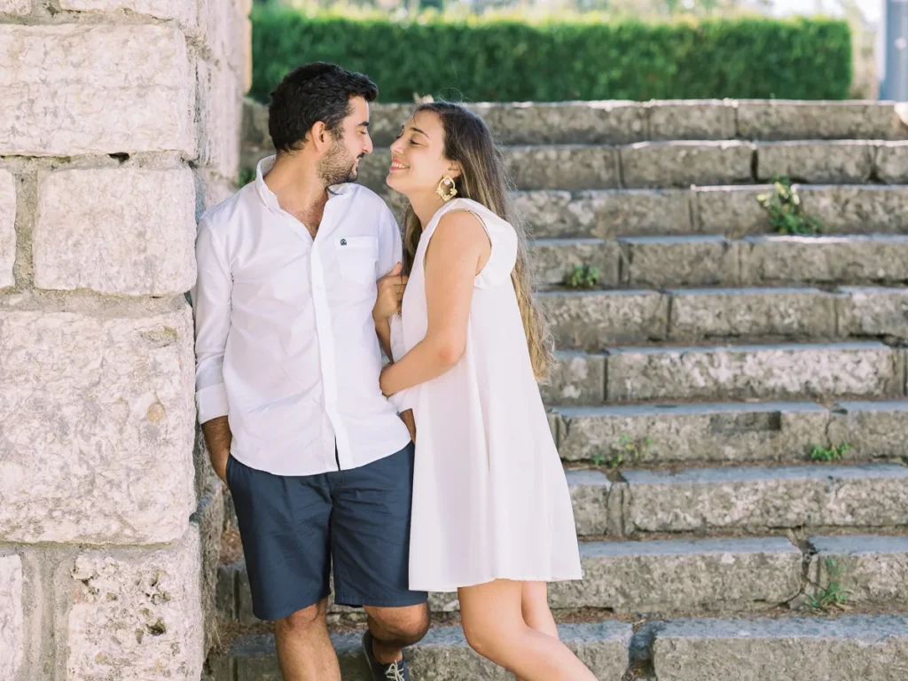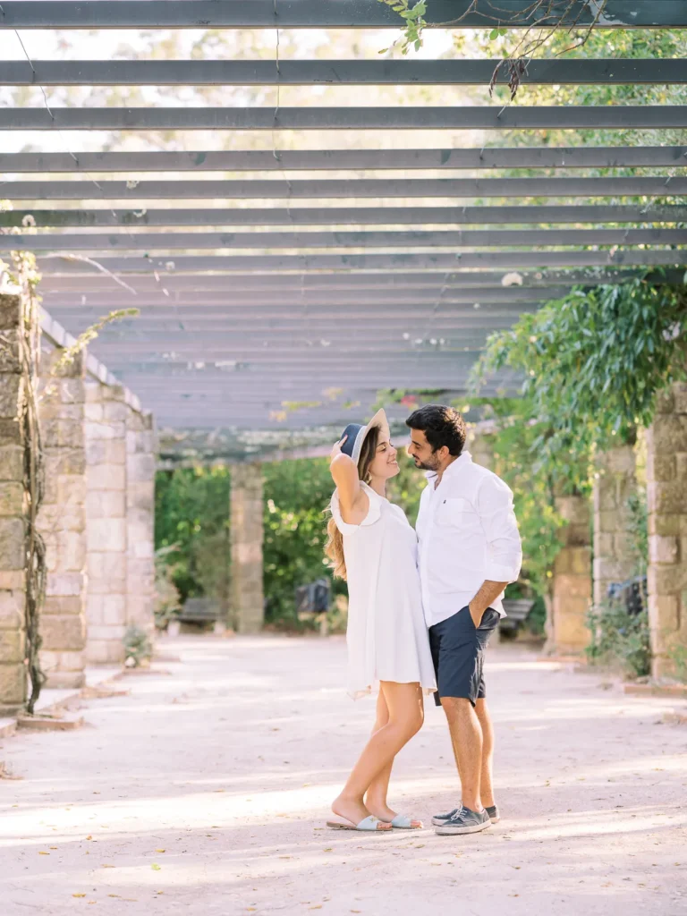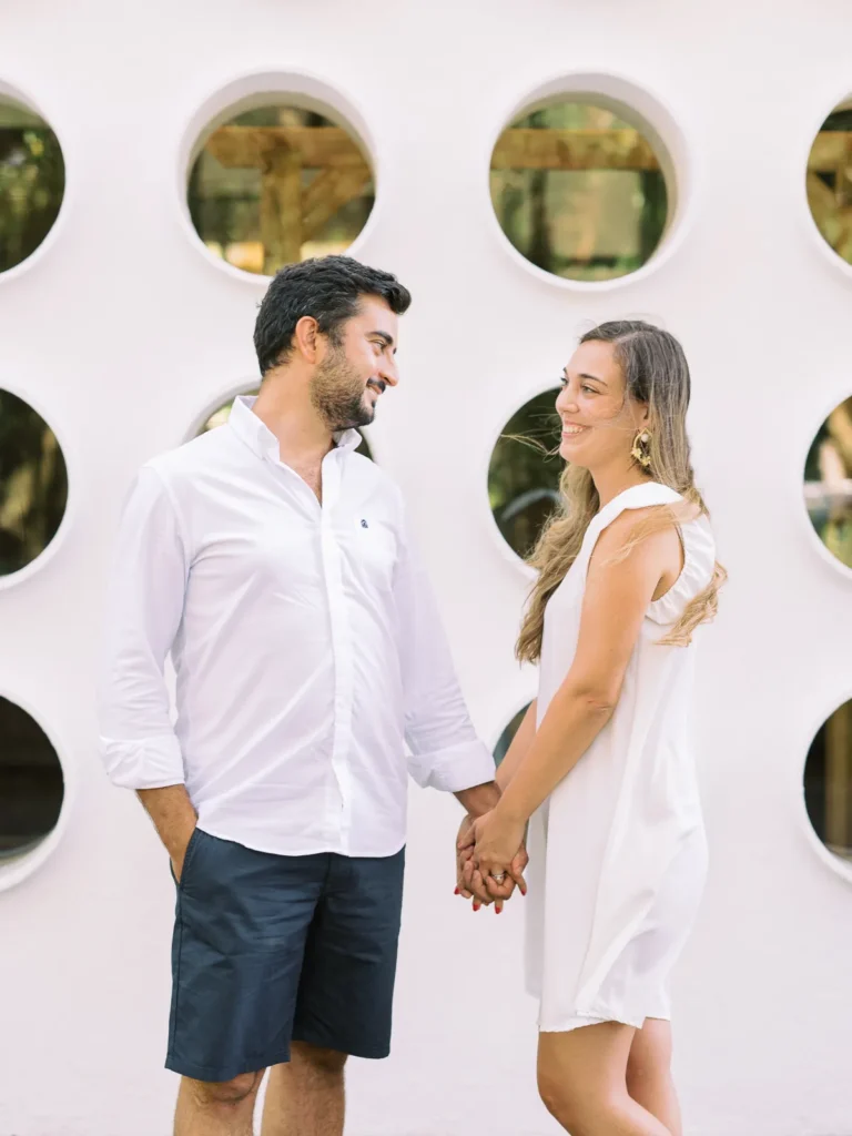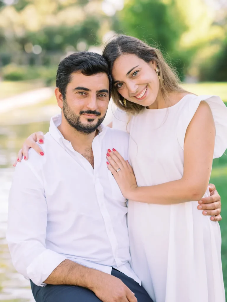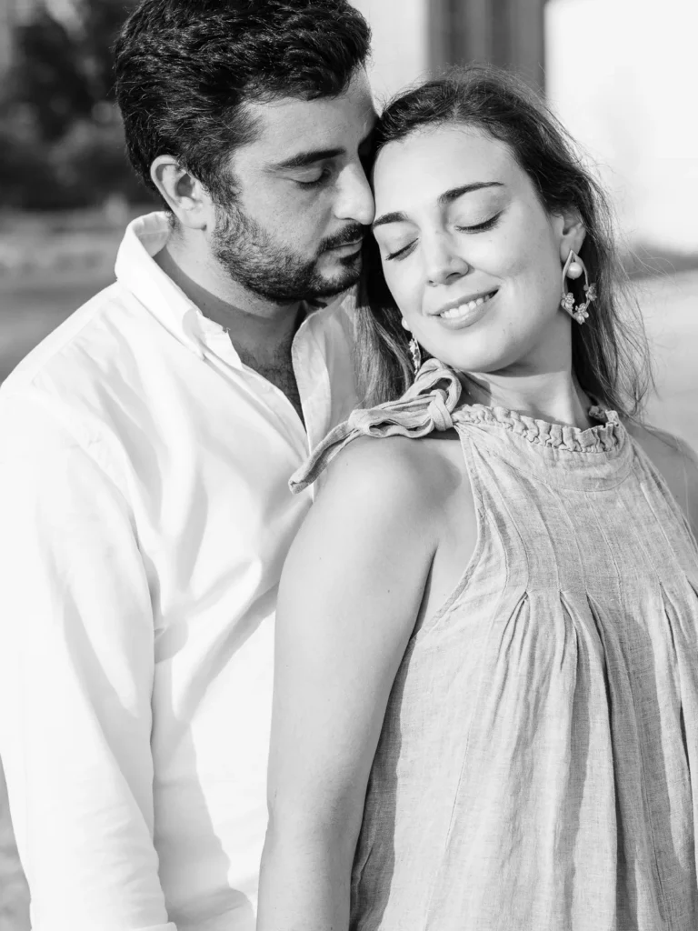 O ponto de partida para este final de tarde descontraído foi o pulmão verde de Lisboa: o Parque Florestal de Monsanto. Mais concretamente, a envolvência clássica e serena do Jardim dos Montes Claros. Entre passeios lentos e conversas soltas, fomos quebrando o gelo e registando a cumplicidade orgânica do casal. Sem poses forçadas, apenas a fluidez documental que nos caracteriza, abraçada pela natureza.
