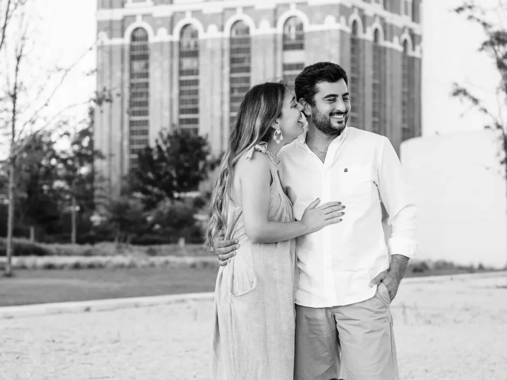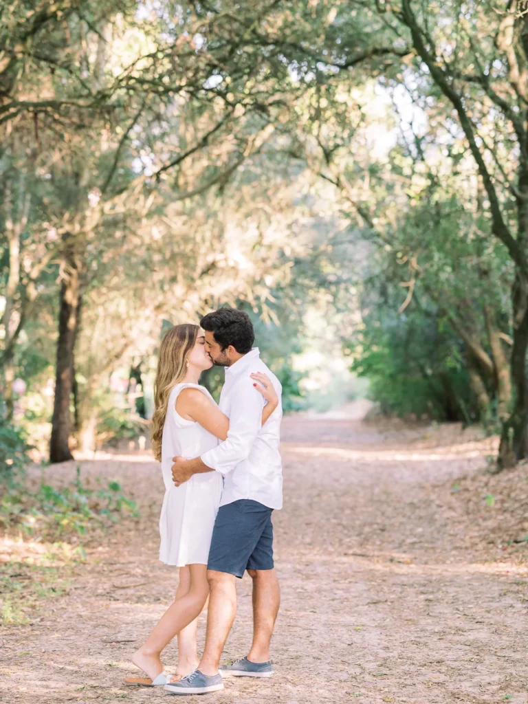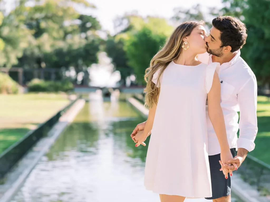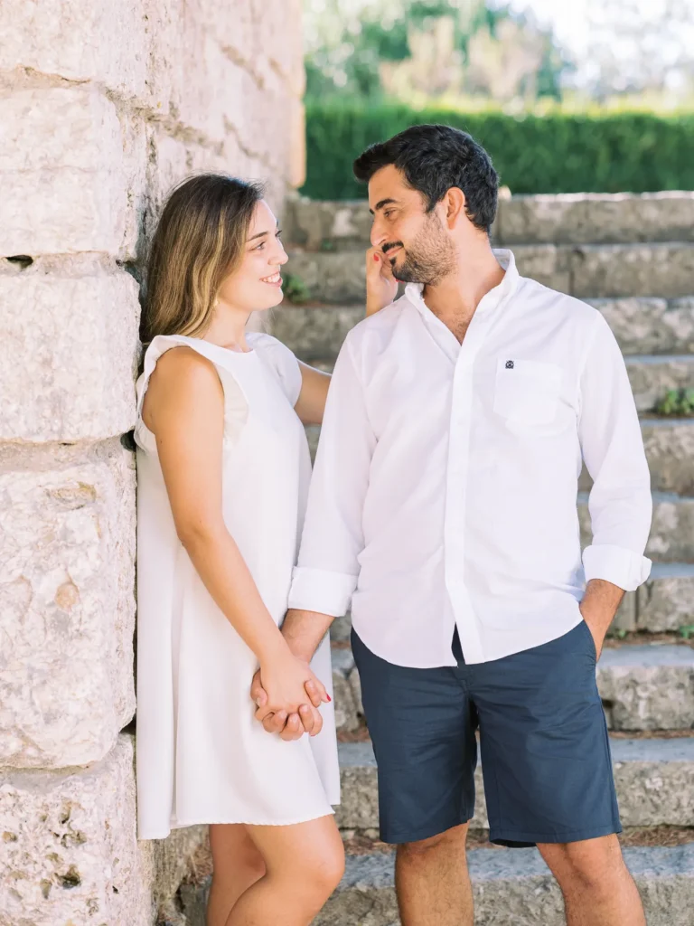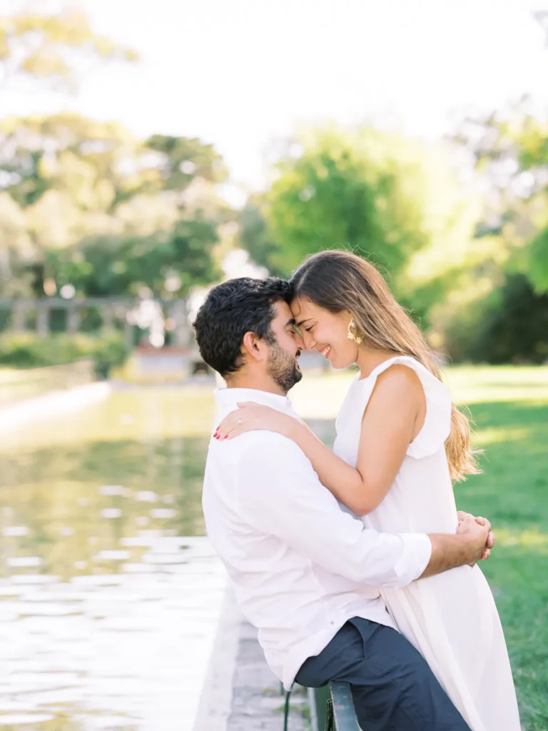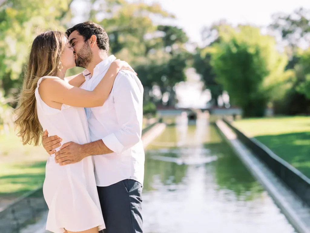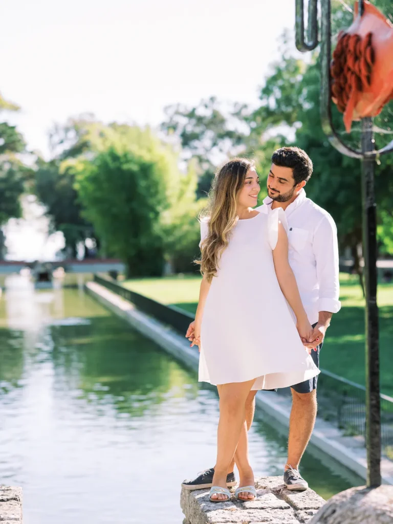 O ponto de partida para este final de tarde descontraído foi o pulmão verde de Lisboa: o Parque Florestal de Monsanto. Mais concretamente, a envolvência clássica e serena do Jardim dos Montes Claros. Entre passeios lentos e conversas soltas, fomos quebrando o gelo e registando a cumplicidade orgânica do casal. Sem poses forçadas, apenas a fluidez documental que nos caracteriza, abraçada pela natureza.