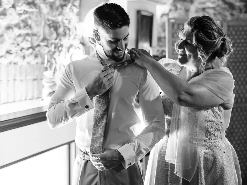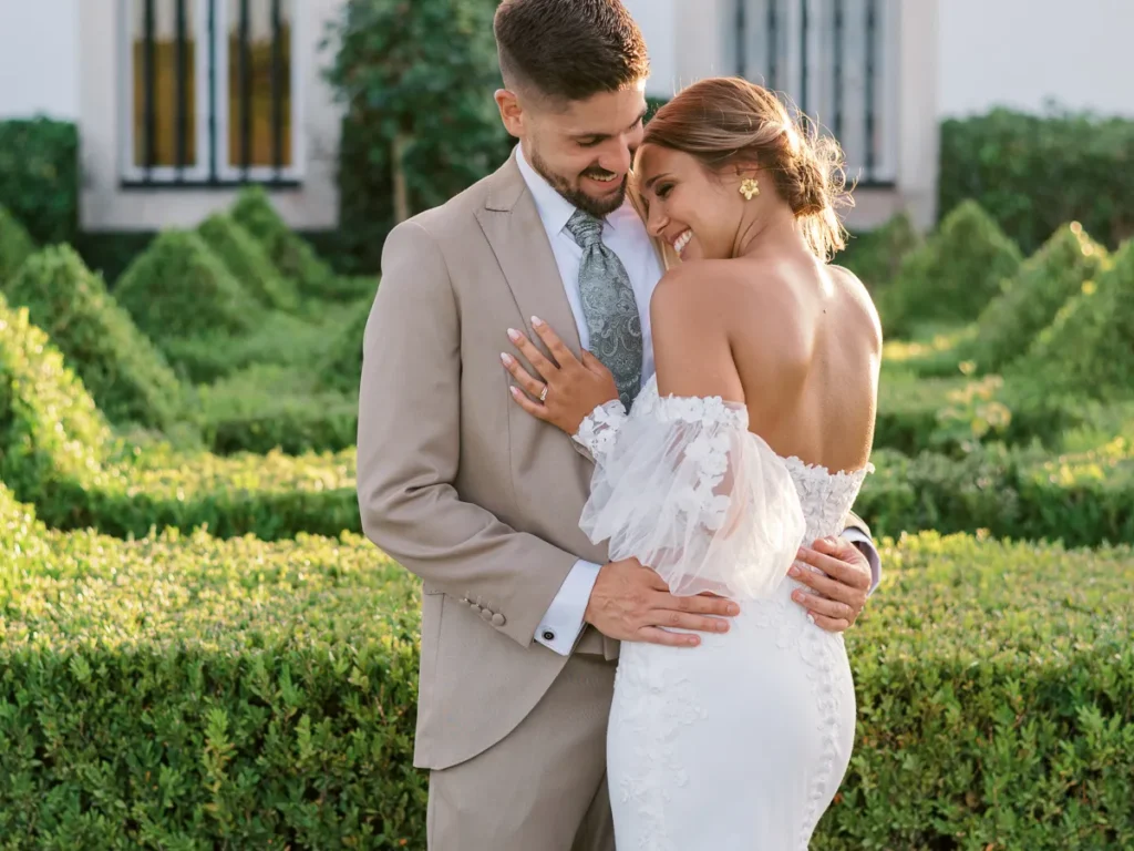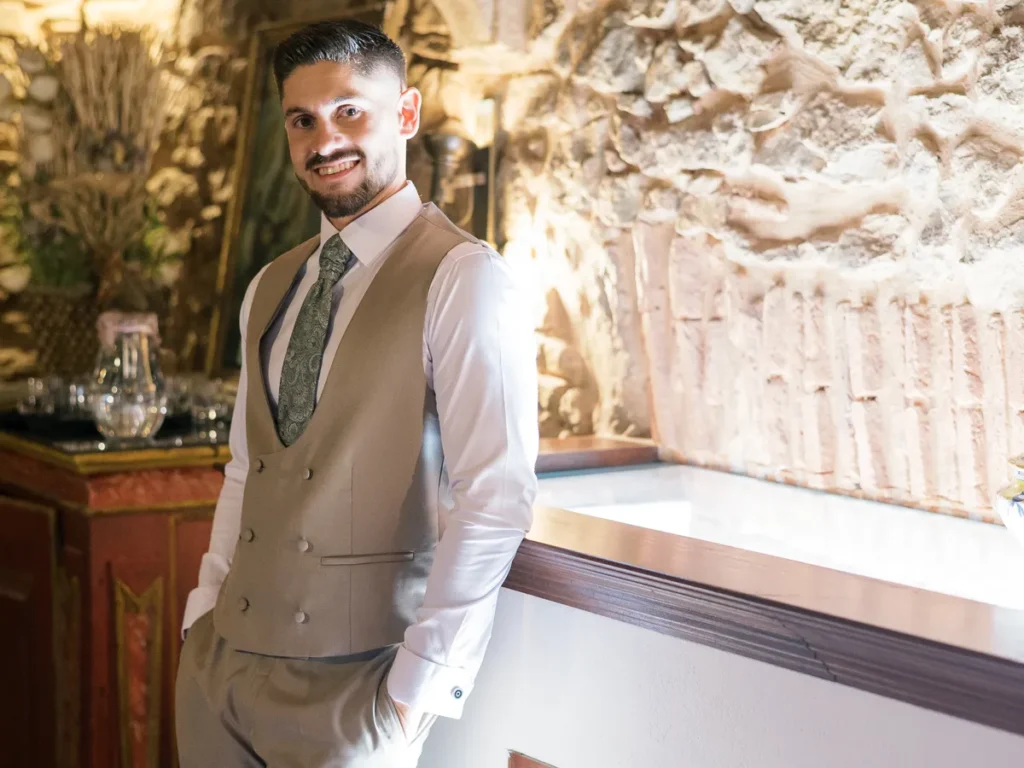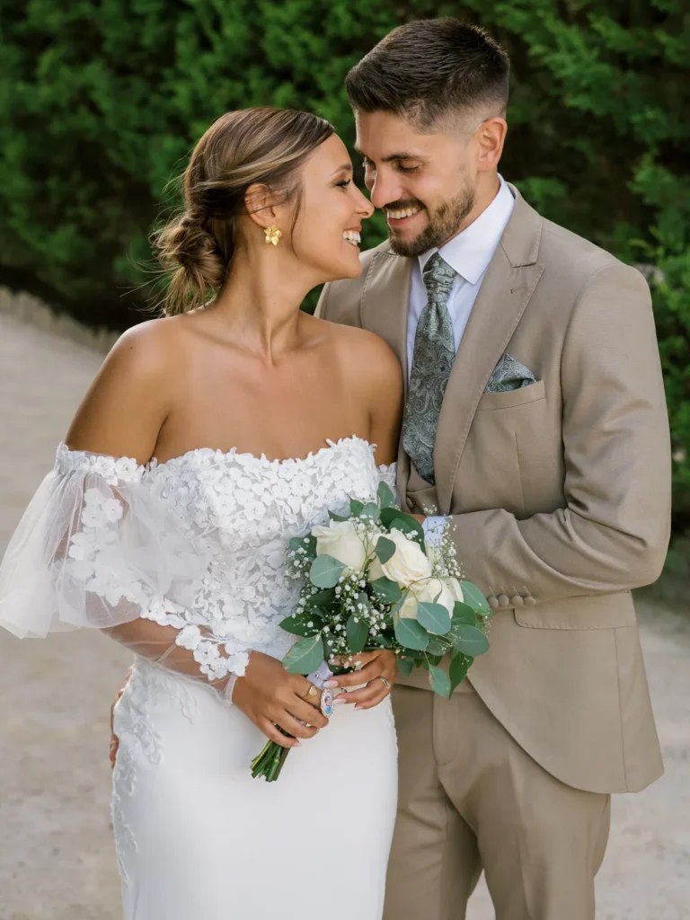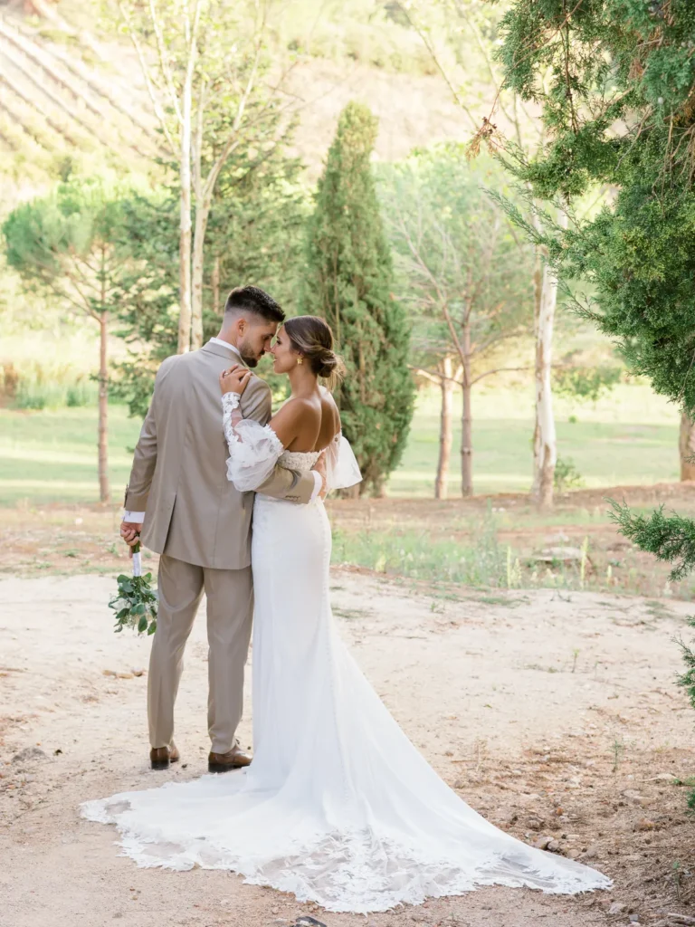 O Diogo partilhou da mesma vibe descontraída. A sua preparação começou no mezanino do salão principal da quinta — um espaço com sombras que dão um caráter incrível à fotografia, mas o dia convidou-nos a vir um pouco ao exterior. Entre conversas e sorrisos, captámos a sua essência de forma genuína.