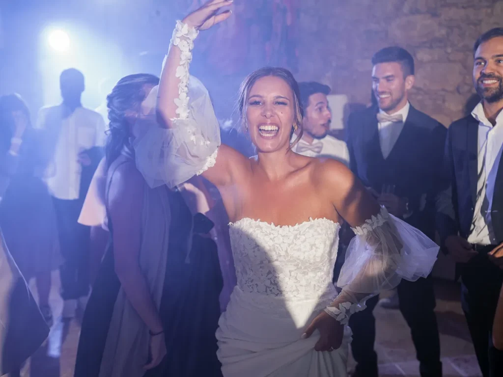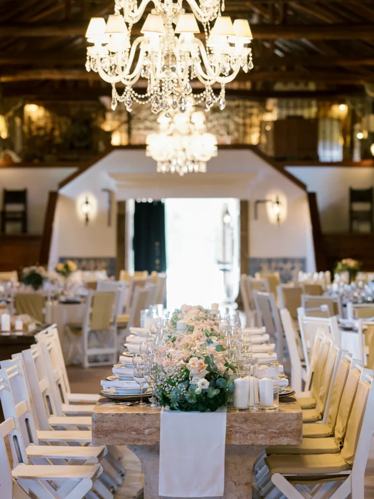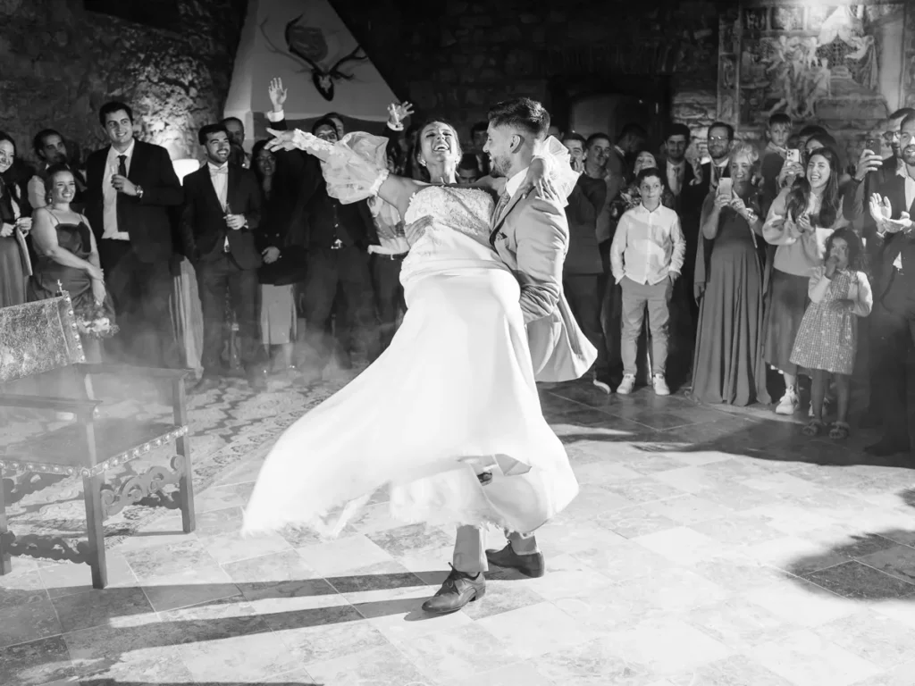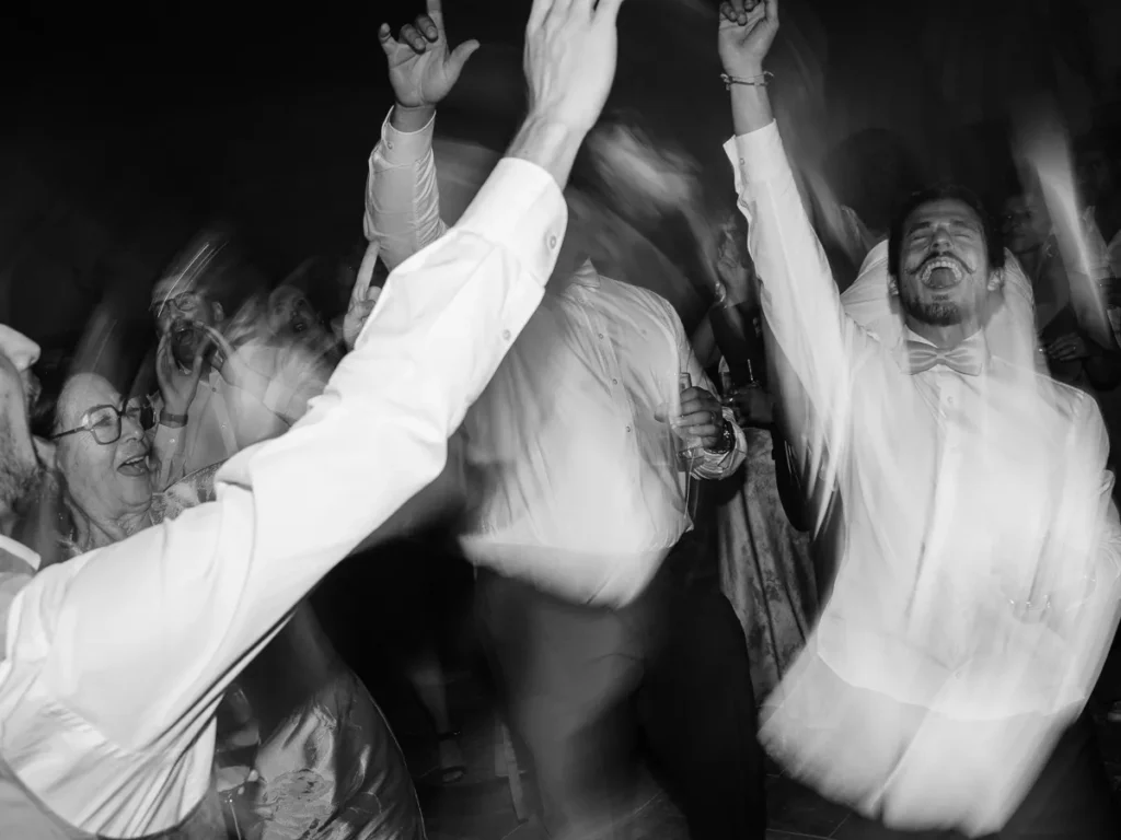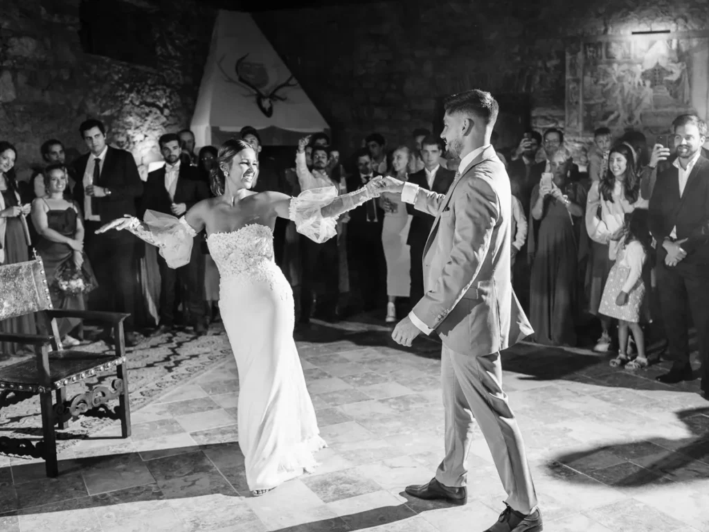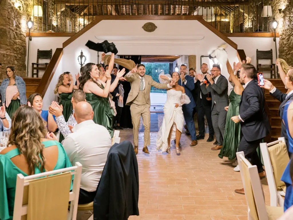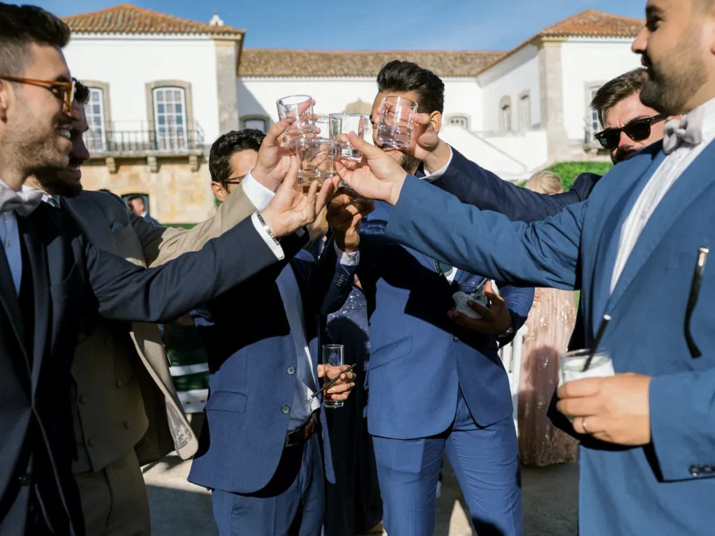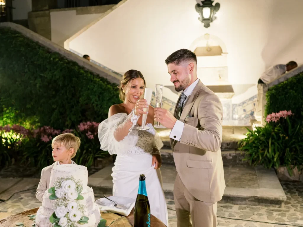 A entrada para o jantar foi memorável: uma verdadeira explosão de alegria com todos os convidados de pé, enquanto o casal passava por todas as mesas. Com a chegada do outono e a vontade de evitar qualquer risco de chuva, a festa fez-se no conforto do Salão dos Arcos, garantindo uma pista de dança acolhedora e ao rubro. O clímax da noite? O corte do bolo, onde o Diogo decidiu dar um banho de champanhe a todos os presentes — fotógrafos incluídos! Um momento de puro fotojornalismo que adorámos imortalizar.