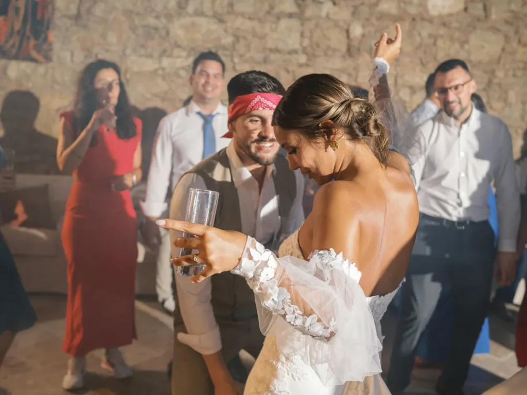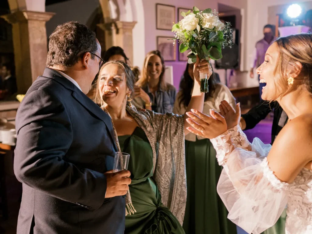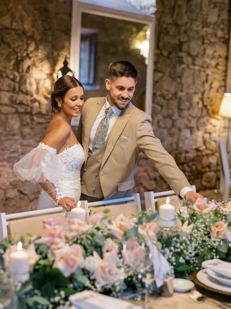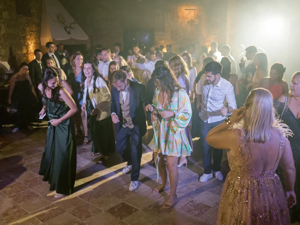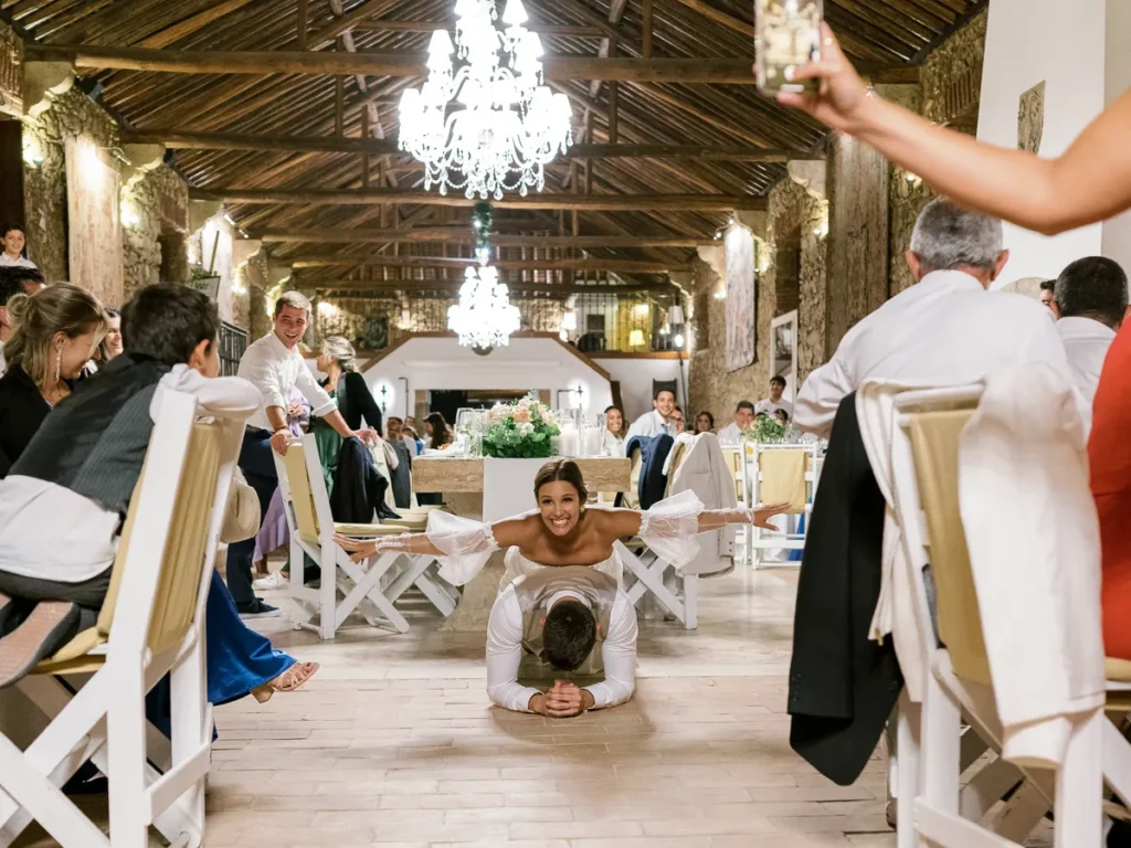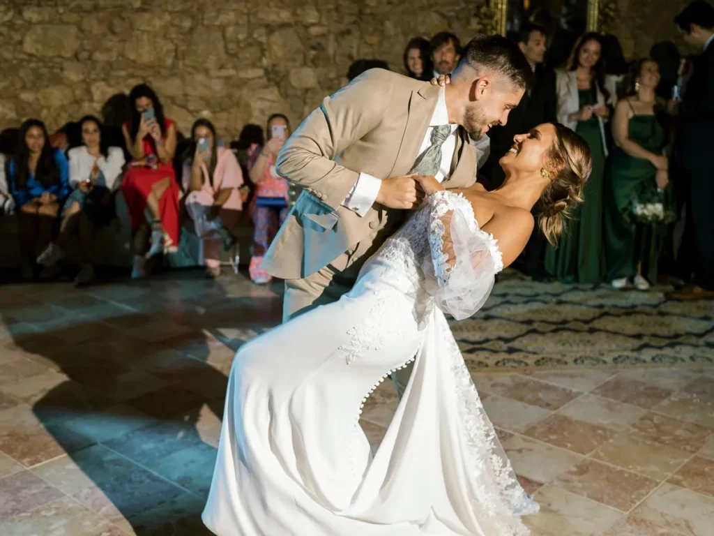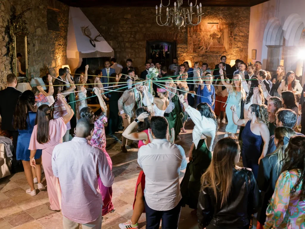 A entrada para o jantar foi memorável: uma verdadeira explosão de alegria com todos os convidados de pé, enquanto o casal passava por todas as mesas. Com a chegada do outono e a vontade de evitar qualquer risco de chuva, a festa fez-se no conforto do Salão dos Arcos, garantindo uma pista de dança acolhedora e ao rubro. O clímax da noite? O corte do bolo, onde o Diogo decidiu dar um banho de champanhe a todos os presentes — fotógrafos incluídos! Um momento de puro fotojornalismo que adorámos imortalizar.