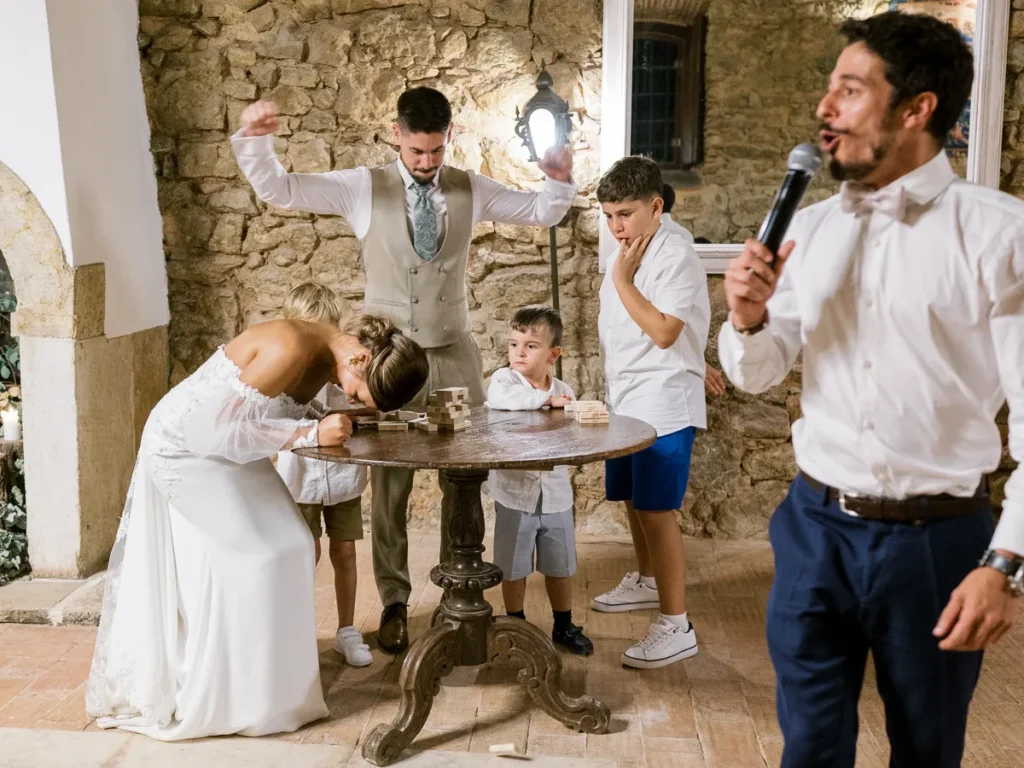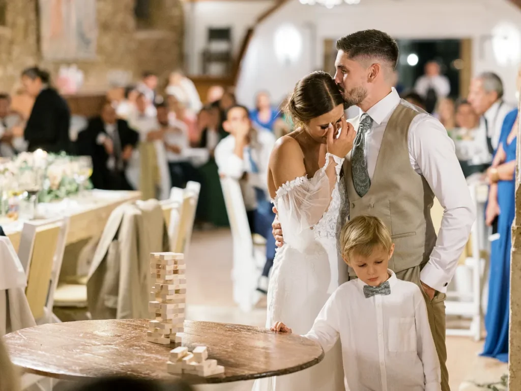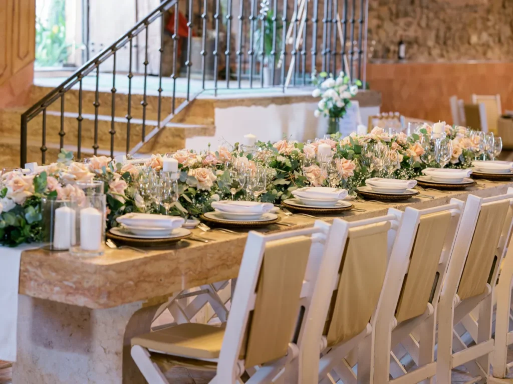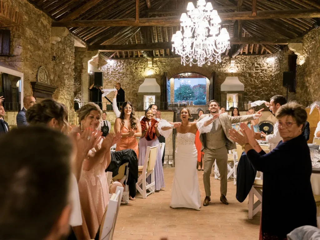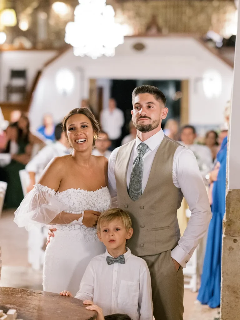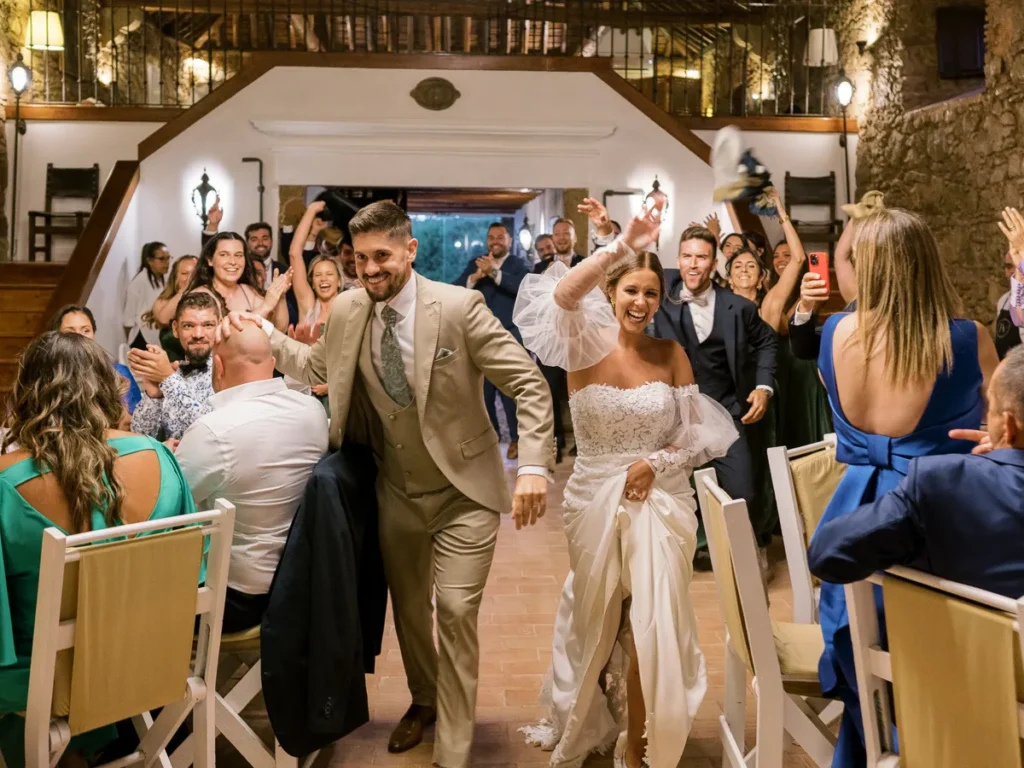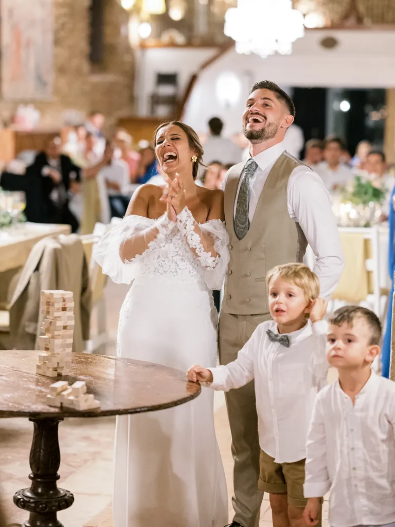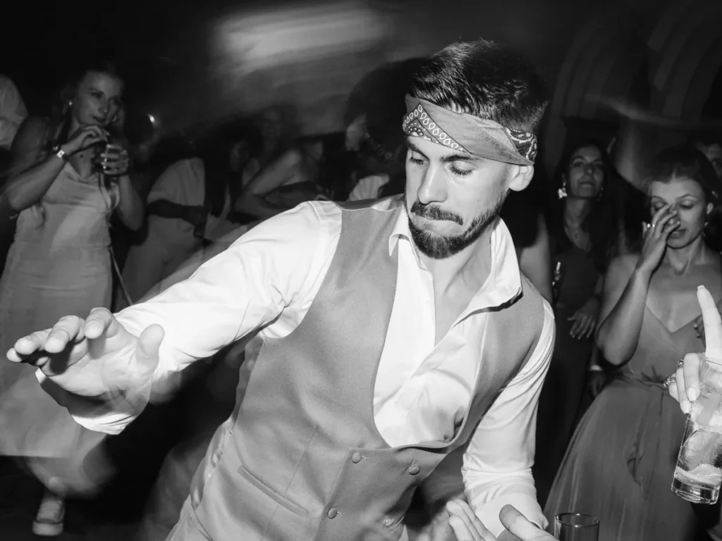 A entrada para o jantar foi memorável: uma verdadeira explosão de alegria com todos os convidados de pé, enquanto o casal passava por todas as mesas. Com a chegada do outono e a vontade de evitar qualquer risco de chuva, a festa fez-se no conforto do Salão dos Arcos, garantindo uma pista de dança acolhedora e ao rubro. O clímax da noite? O corte do bolo, onde o Diogo decidiu dar um banho de champanhe a todos os presentes — fotógrafos incluídos! Um momento de puro fotojornalismo que adorámos imortalizar.