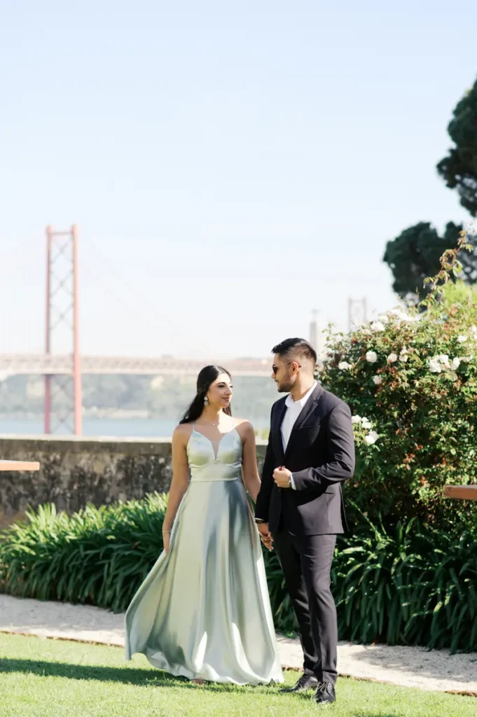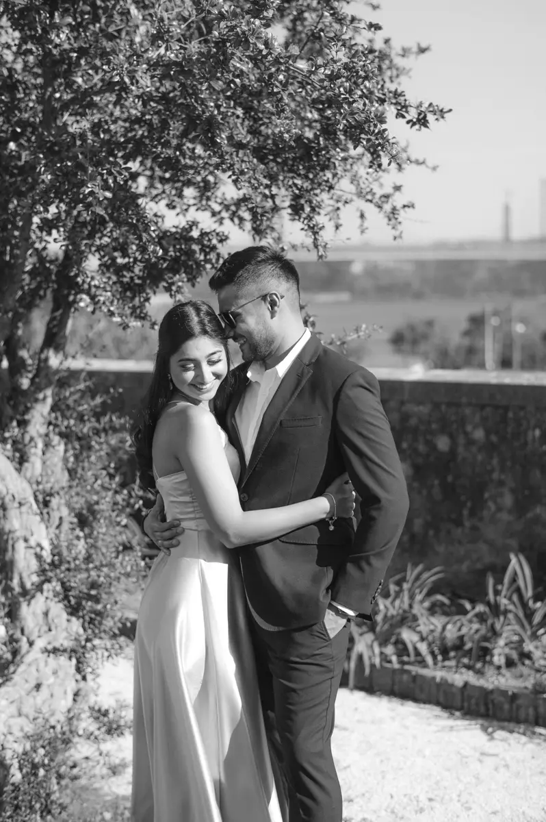 A Karishma e o Shivam idealizaram uma sessão de noivado (ou pre-wedding) que celebrasse o melhor de dois mundos: as suas raízes culturais e a sua essência moderna e descontraída. O resultado foi uma tarde inesquecível, dividida em três ambientes distintos, onde o romantismo andou sempre de mãos dadas com muitas gargalhadas.