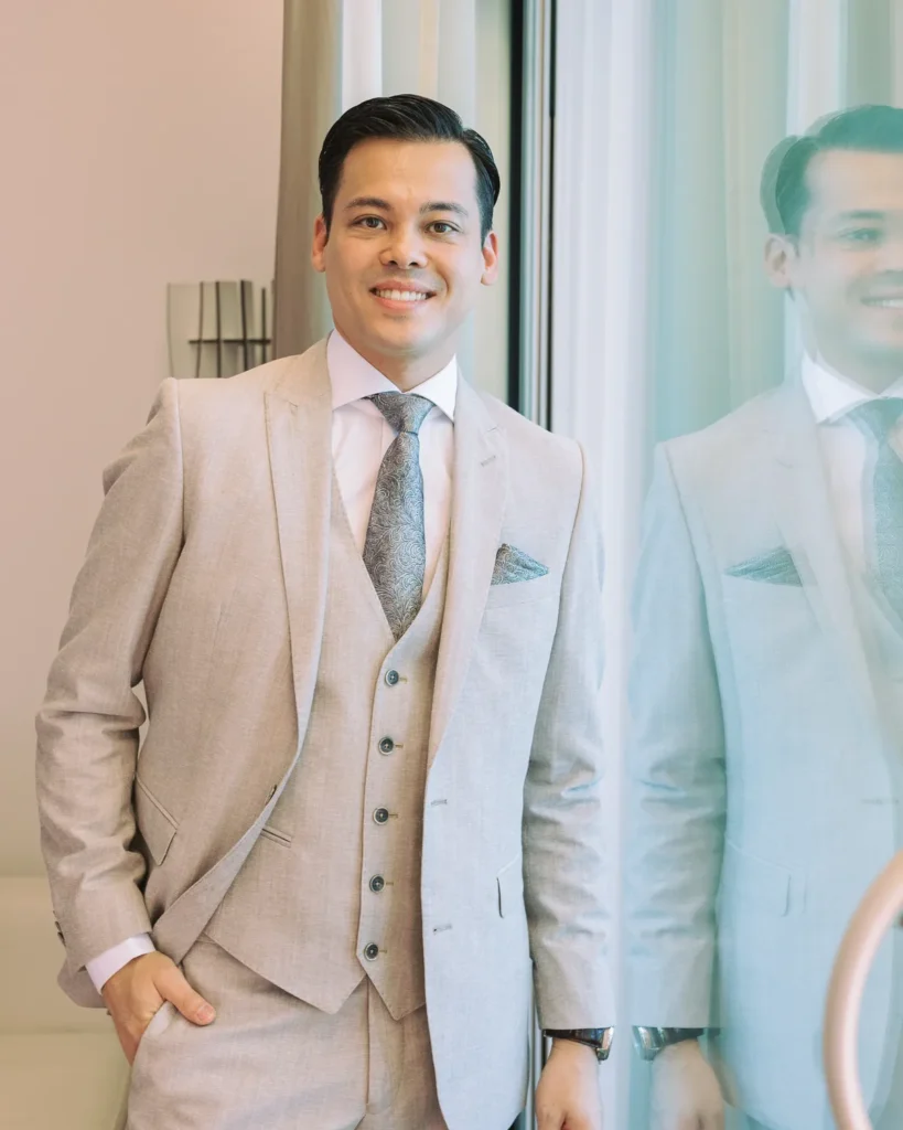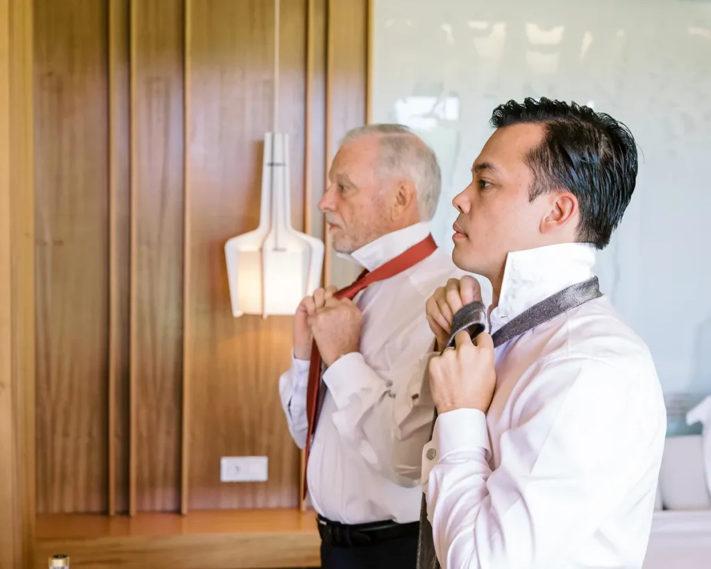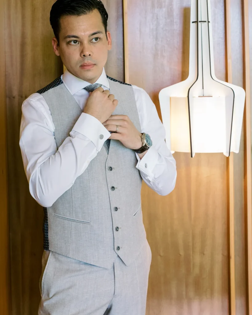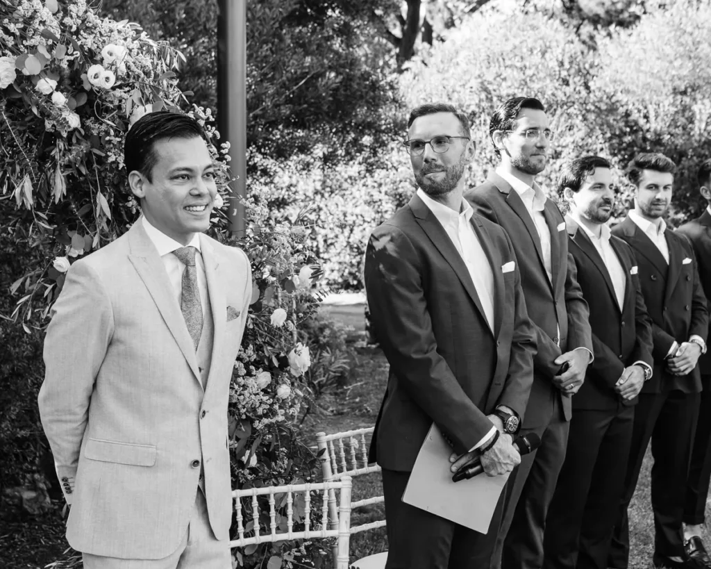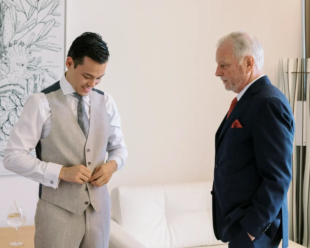 Em contraste absoluto, a preparação do Alex decorreu noutra suite do Onyria, imersa numa tranquilidade quase palpável. Com a nossa abordagem documental, preservámos a calma, a expectativa e a serenidade do noivo antes de caminhar para o altar, sem nunca interferir no desenrolar orgânico da manhã.