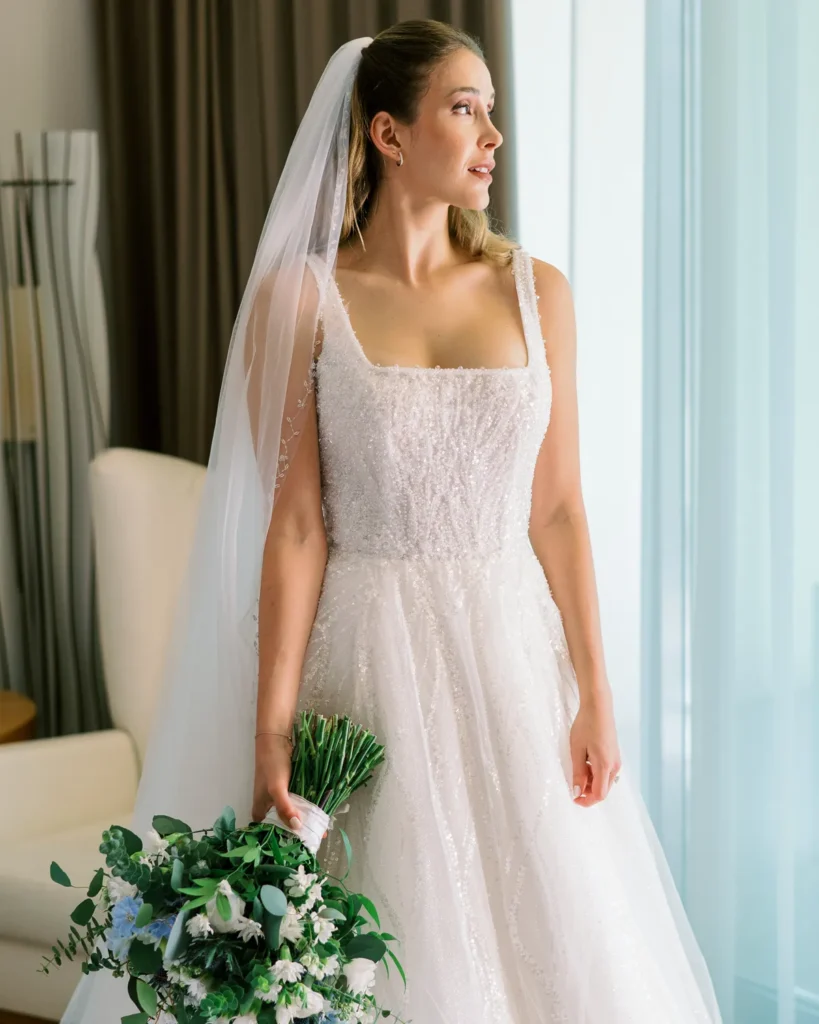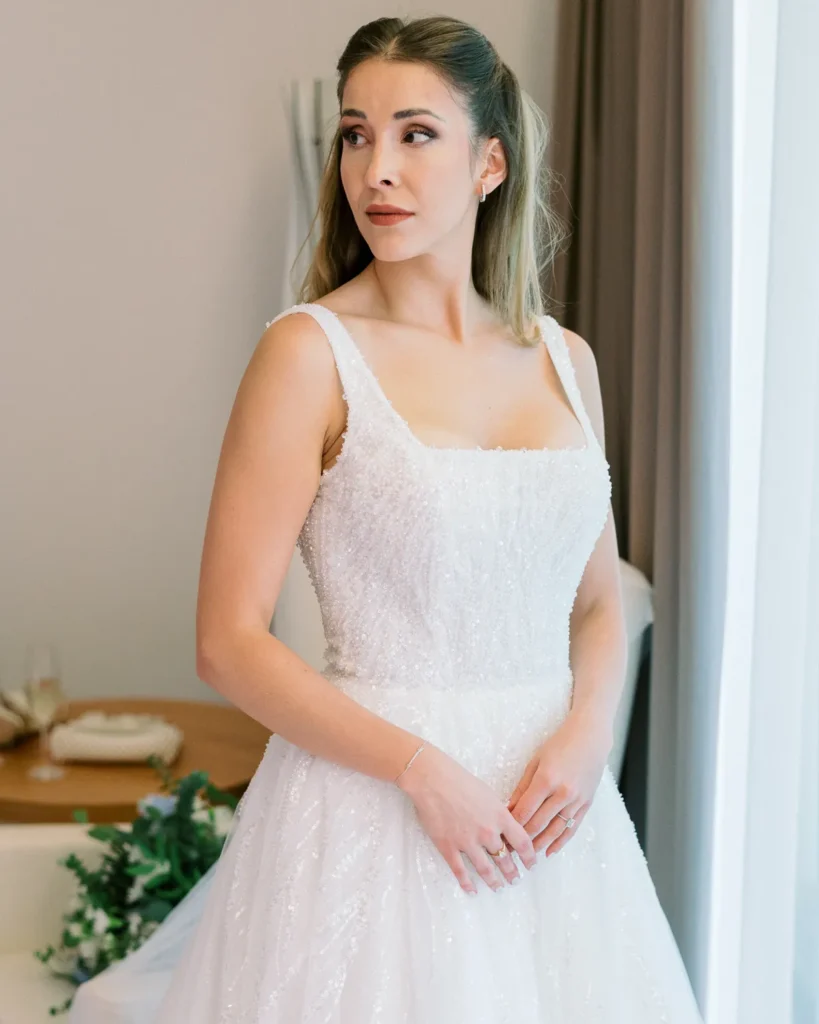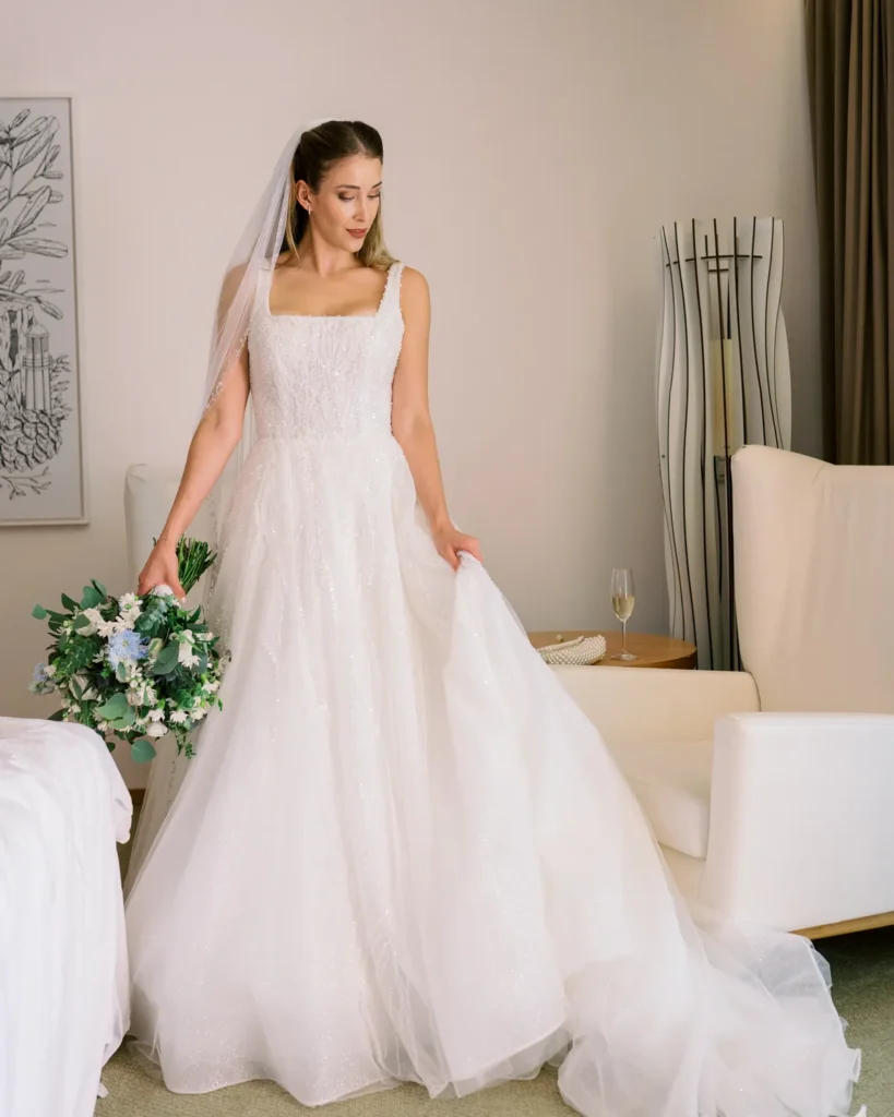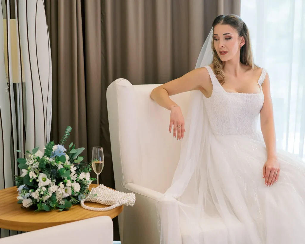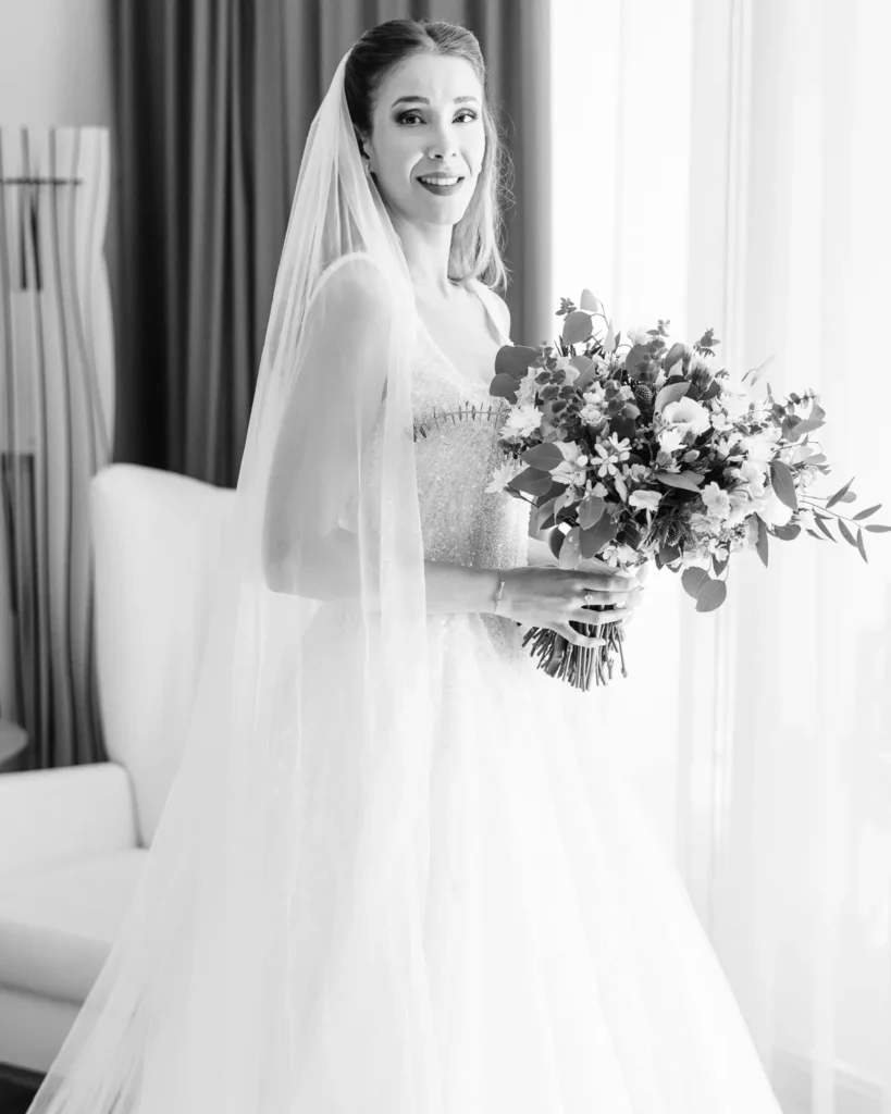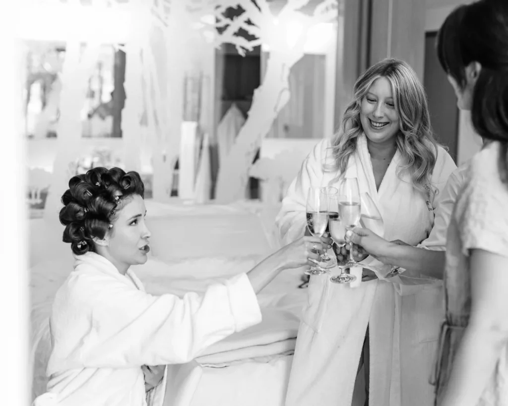A preparação da Lenna aconteceu numa das suites do hotel e foi a prova de que a vida real é sempre a mais fascinante. Com um ligeiro atraso a instalar um caos vibrante, e a maquilhagem e cabelos entregues carinhosamente às mãos de uma amiga convidada, documentámos a energia, a ansiedade e a beleza pura de instantes que não se repetem. A nossa presença, como sempre, manteve-se invisível, registando a verdade do momento.