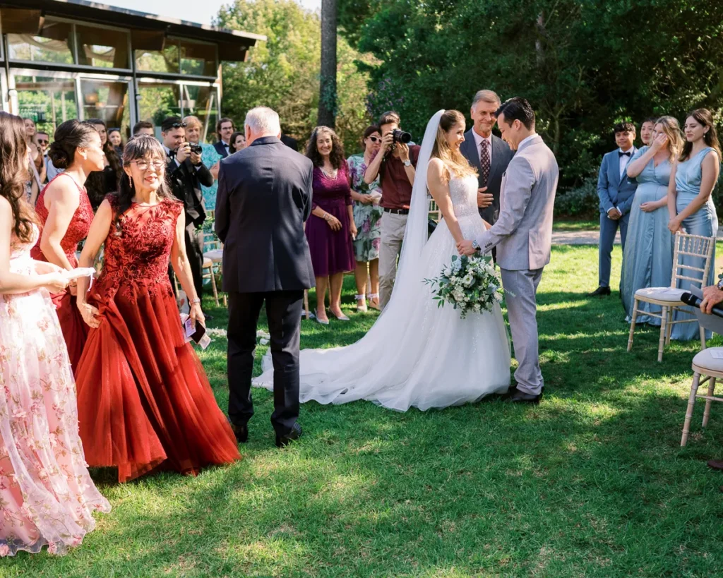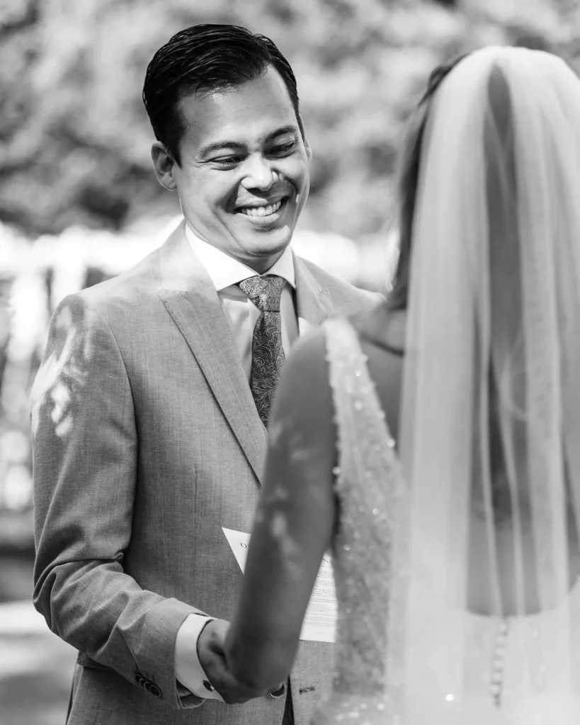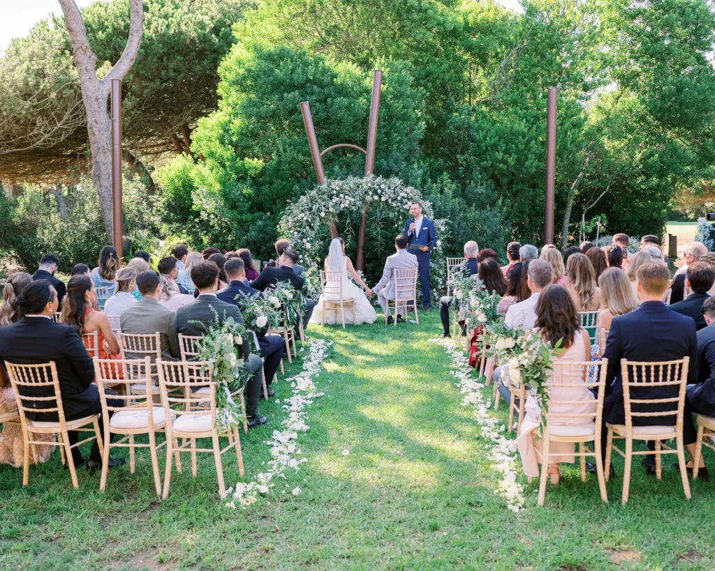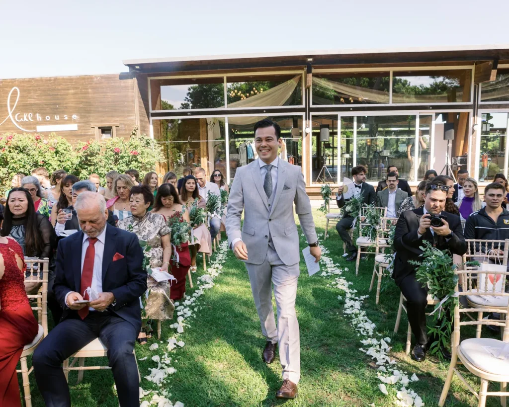 A cerimónia simbólica teve como cenário o relvado impecável do jardim da Lake House. Presidida por um amigo de longa data do Alex, a celebração foi de uma carga emocional arrebatadora. O momento em que o Alex viu a Lenna caminhar na sua direção e a troca dos votos trouxeram lágrimas genuínas que fizemos questão de guardar para sempre no seu legado visual.