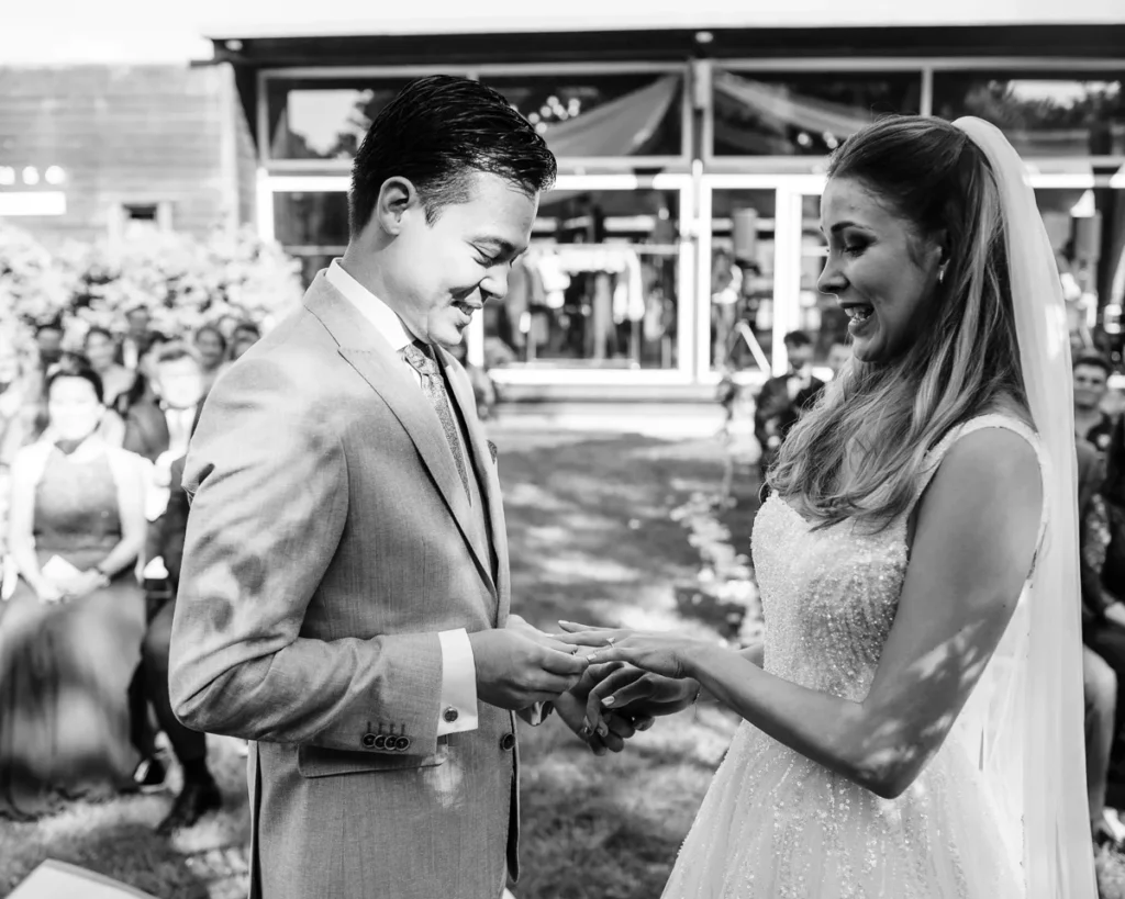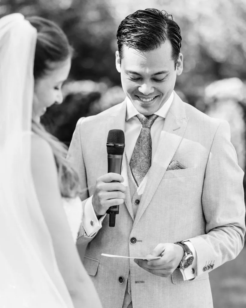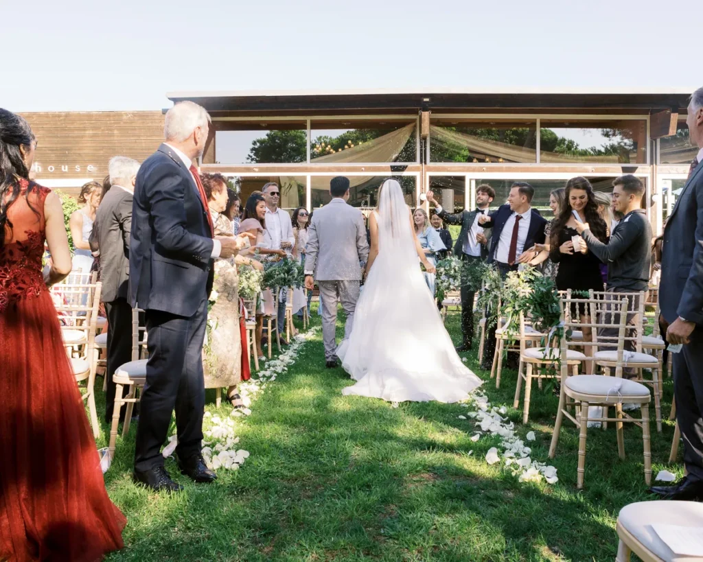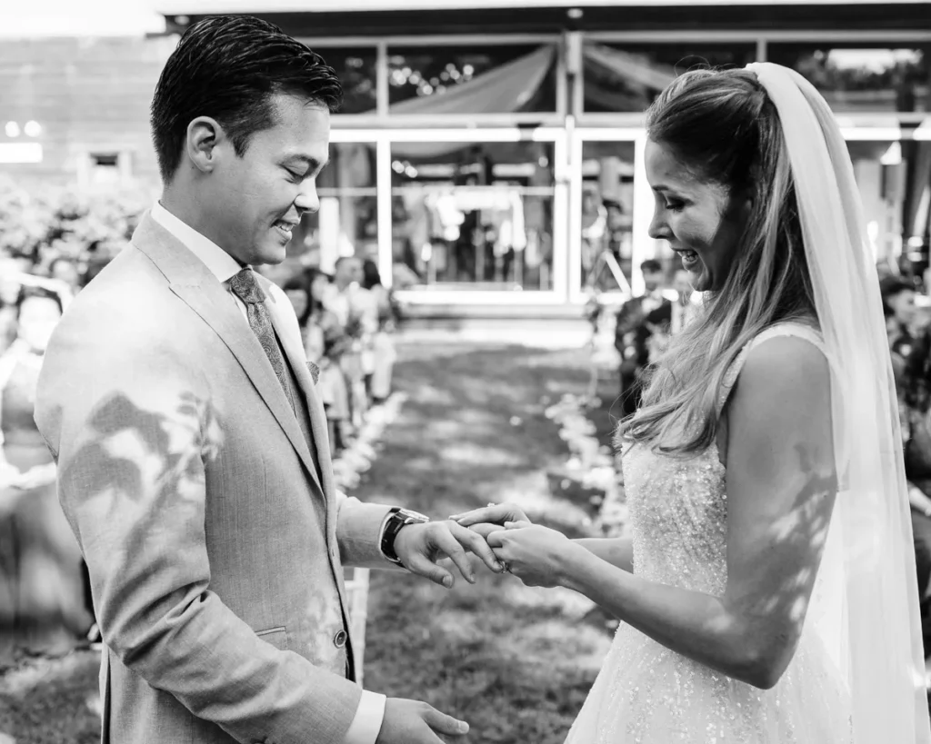 A cerimónia simbólica teve como cenário o relvado impecável do jardim da Lake House. Presidida por um amigo de longa data do Alex, a celebração foi de uma carga emocional arrebatadora. O momento em que o Alex viu a Lenna caminhar na sua direção e a troca dos votos trouxeram lágrimas genuínas que fizemos questão de guardar para sempre no seu legado visual.