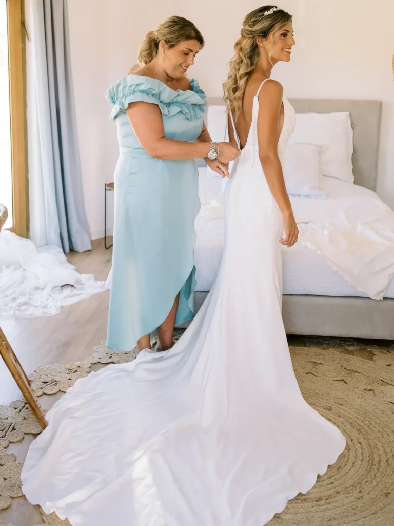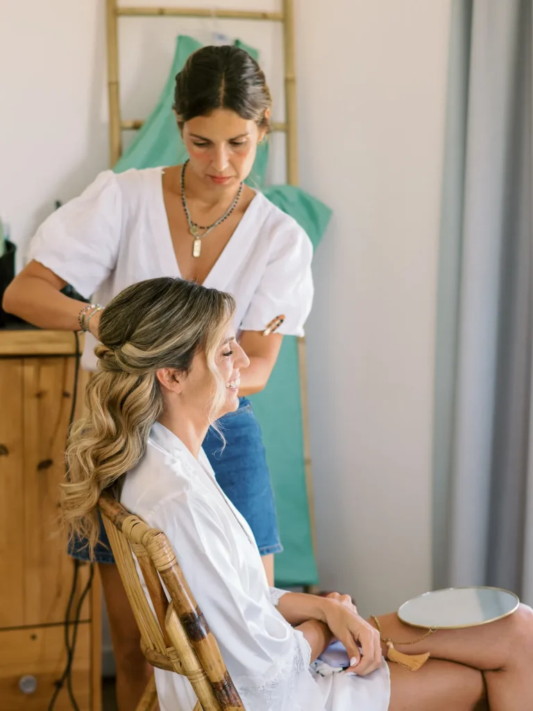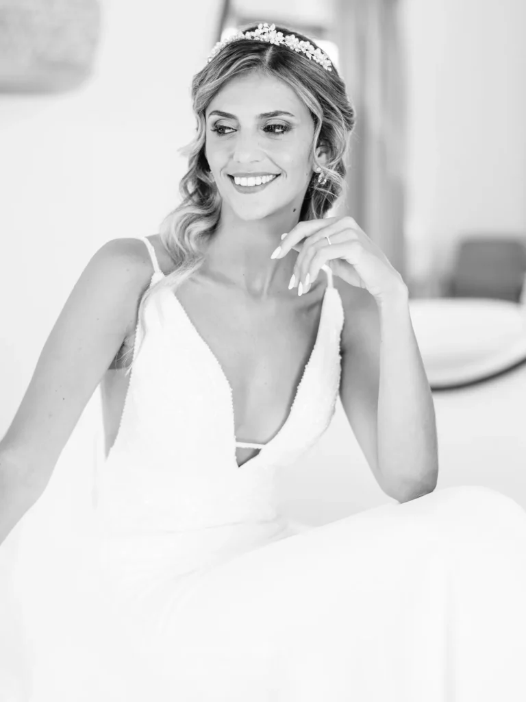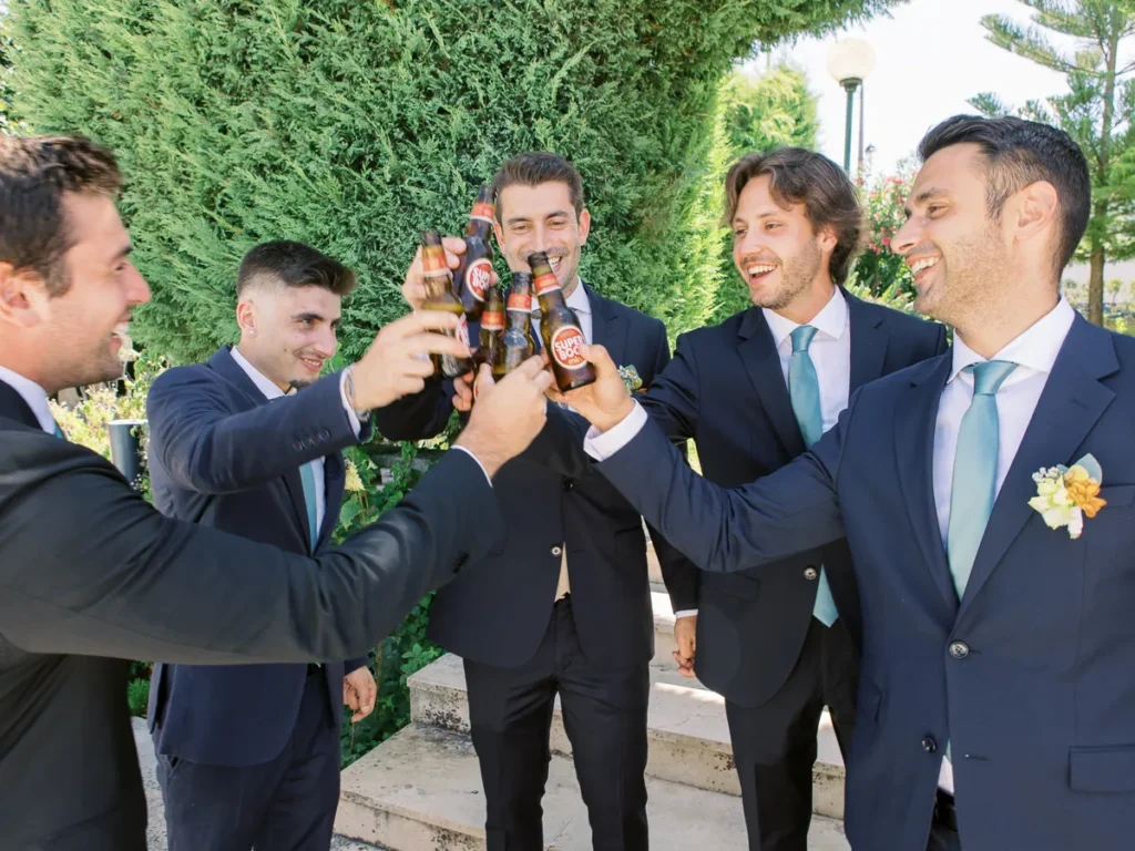 A Patrícia escolheu viver as suas últimas horas de solteira numa pequena e charmosa casa da própria quinta, rodeada pelas vinhas. O ambiente respirava uma vibe incrivelmente cool, pontuada por aquele nervosismo miudinho e bonito de quem está prestes a subir ao altar. O culminar desta preparação? Um emotivo brinde com champanhe entre a noiva e as suas amigas mais chegadas, selando o momento com uma luz natural perfeita.