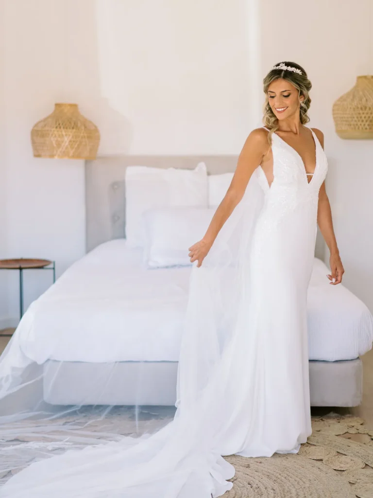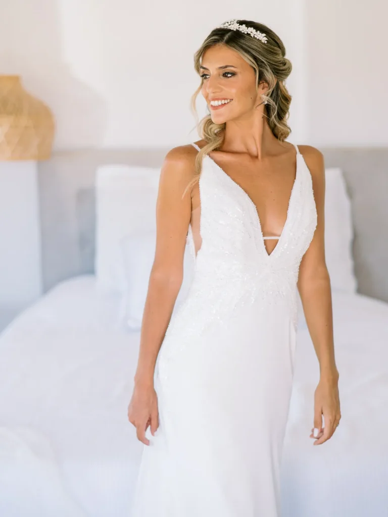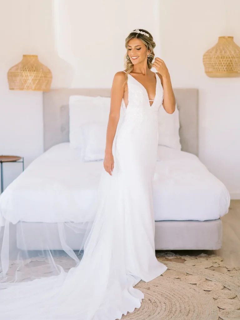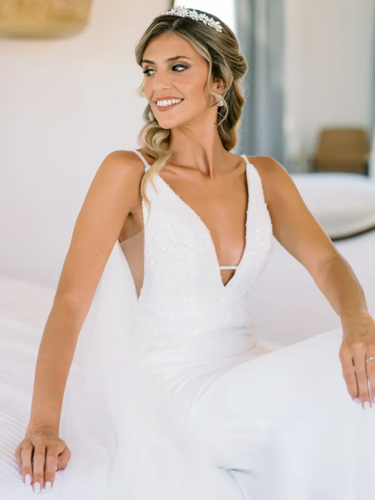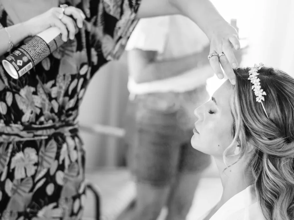A Patrícia escolheu viver as suas últimas horas de solteira numa pequena e charmosa casa da própria quinta, rodeada pelas vinhas. O ambiente respirava uma vibe incrivelmente cool, pontuada por aquele nervosismo miudinho e bonito de quem está prestes a subir ao altar. O culminar desta preparação? Um emotivo brinde com champanhe entre a noiva e as suas amigas mais chegadas, selando o momento com uma luz natural perfeita.