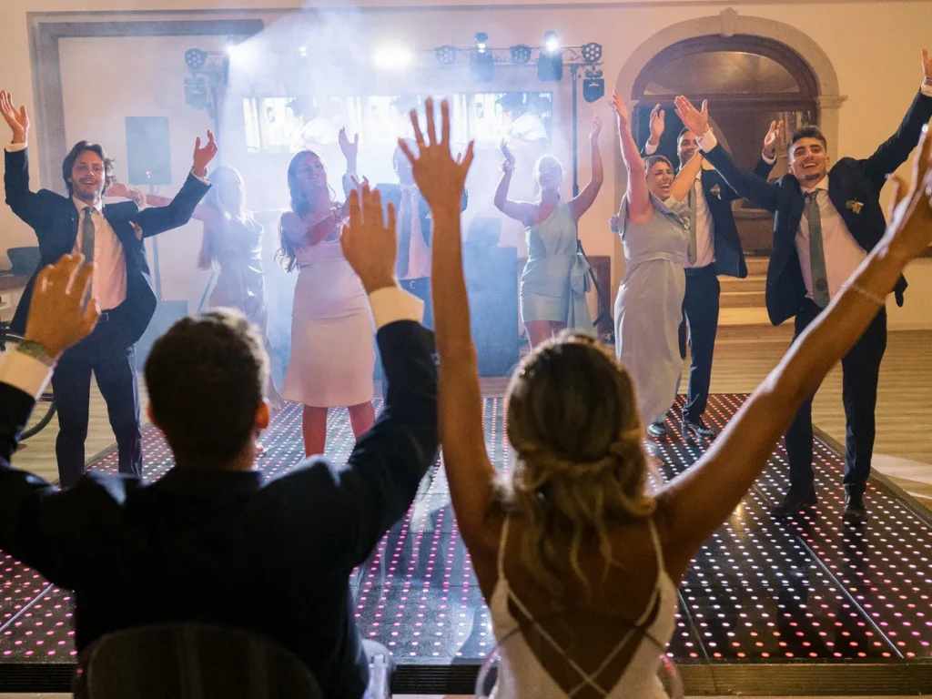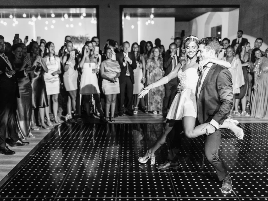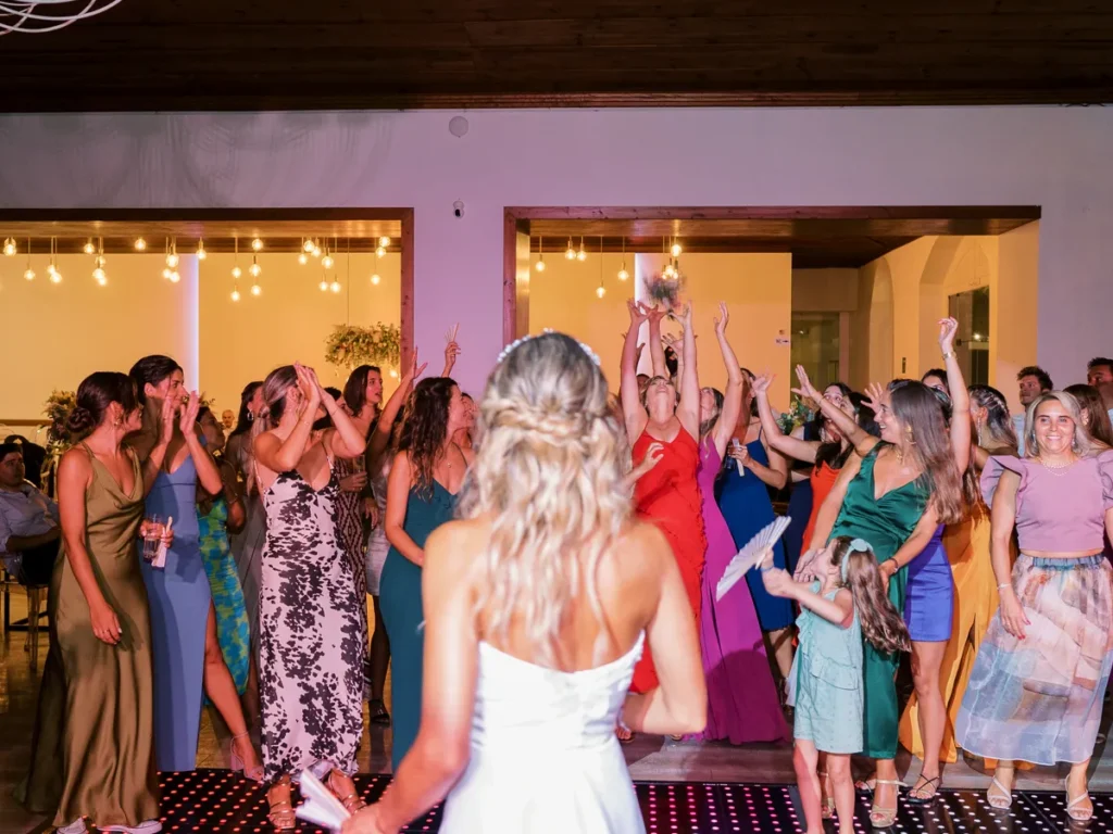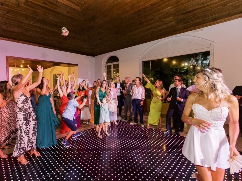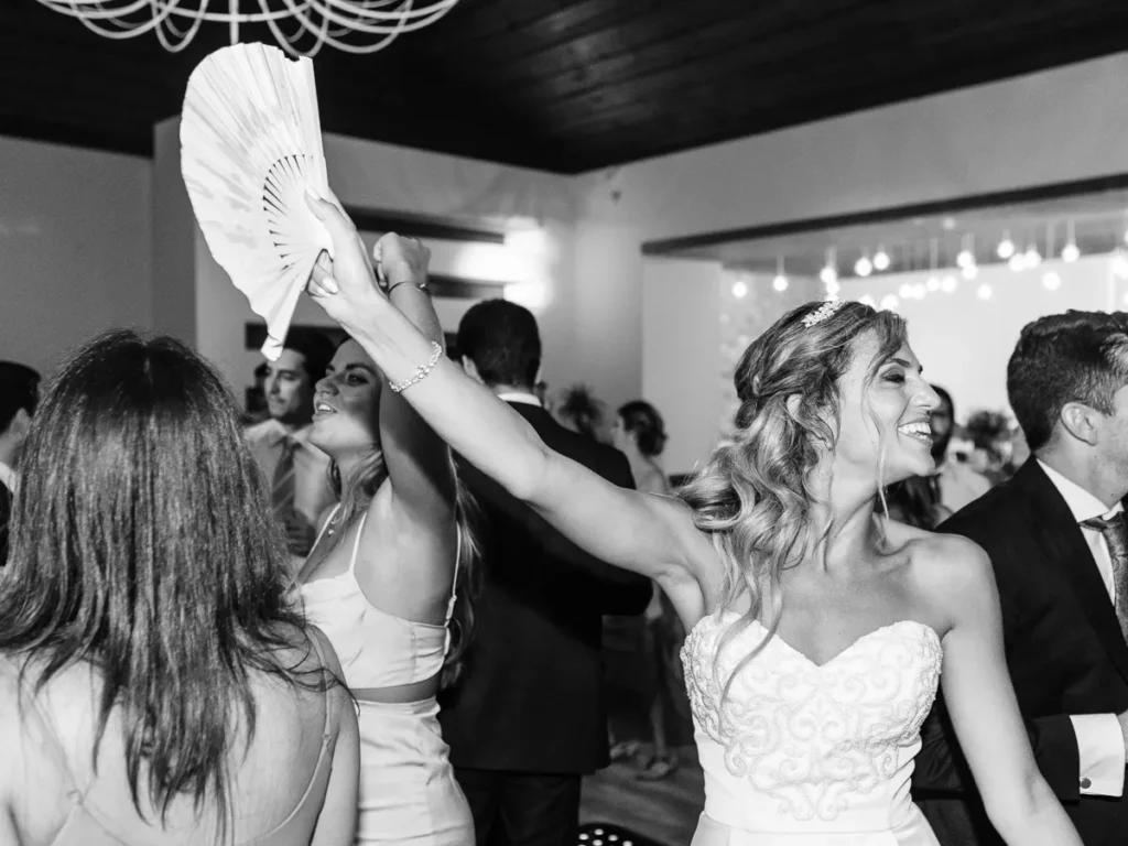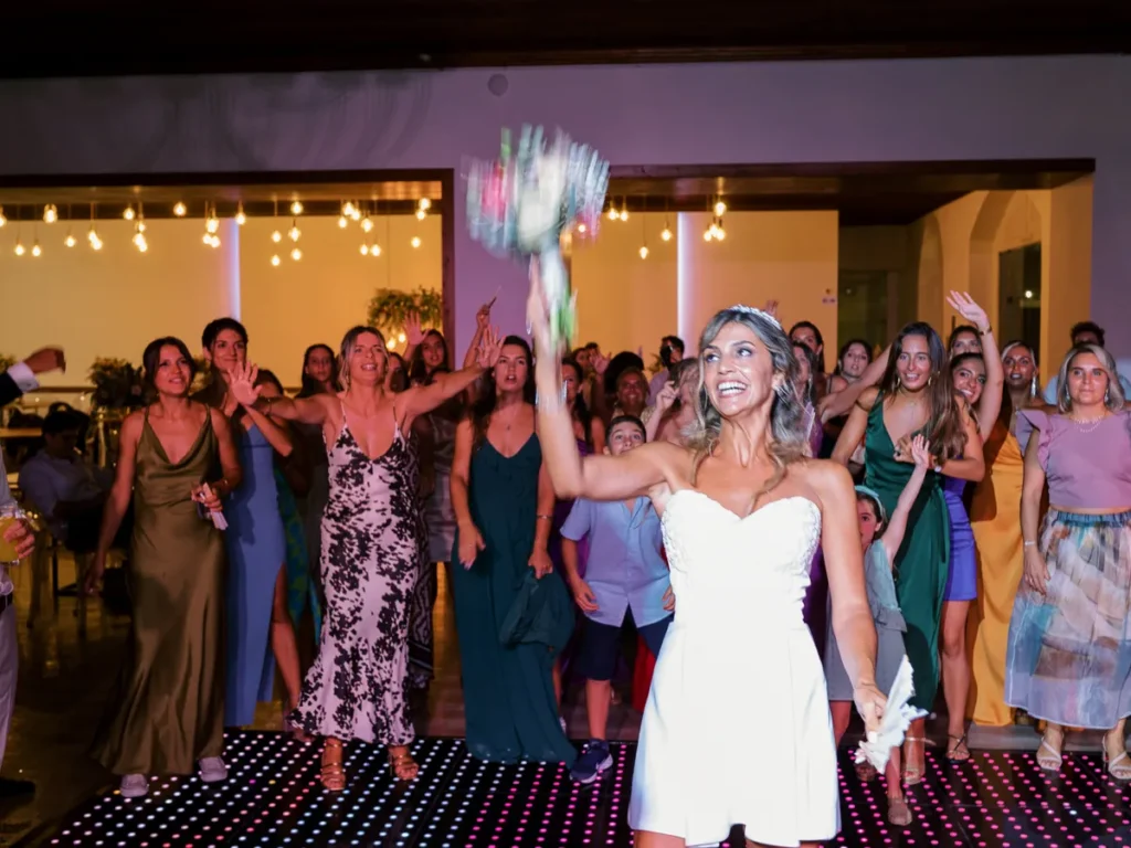 A animação prometia e não desiludiu! Logo no cocktail, um pagode brasileiro contagiou os convidados, elevando a energia aos limites. A entrada no salão foi uma loucura completa de excitação. O jantar intercalou momentos de festa com homenagens profundamente emotivas aos noivos. Para abrir a pista, a Patrícia e o Nuno brilharam com uma coreografia irrepreensível, dando o mote para um DJ que levou a festa ao rubro, pela noite dentro.